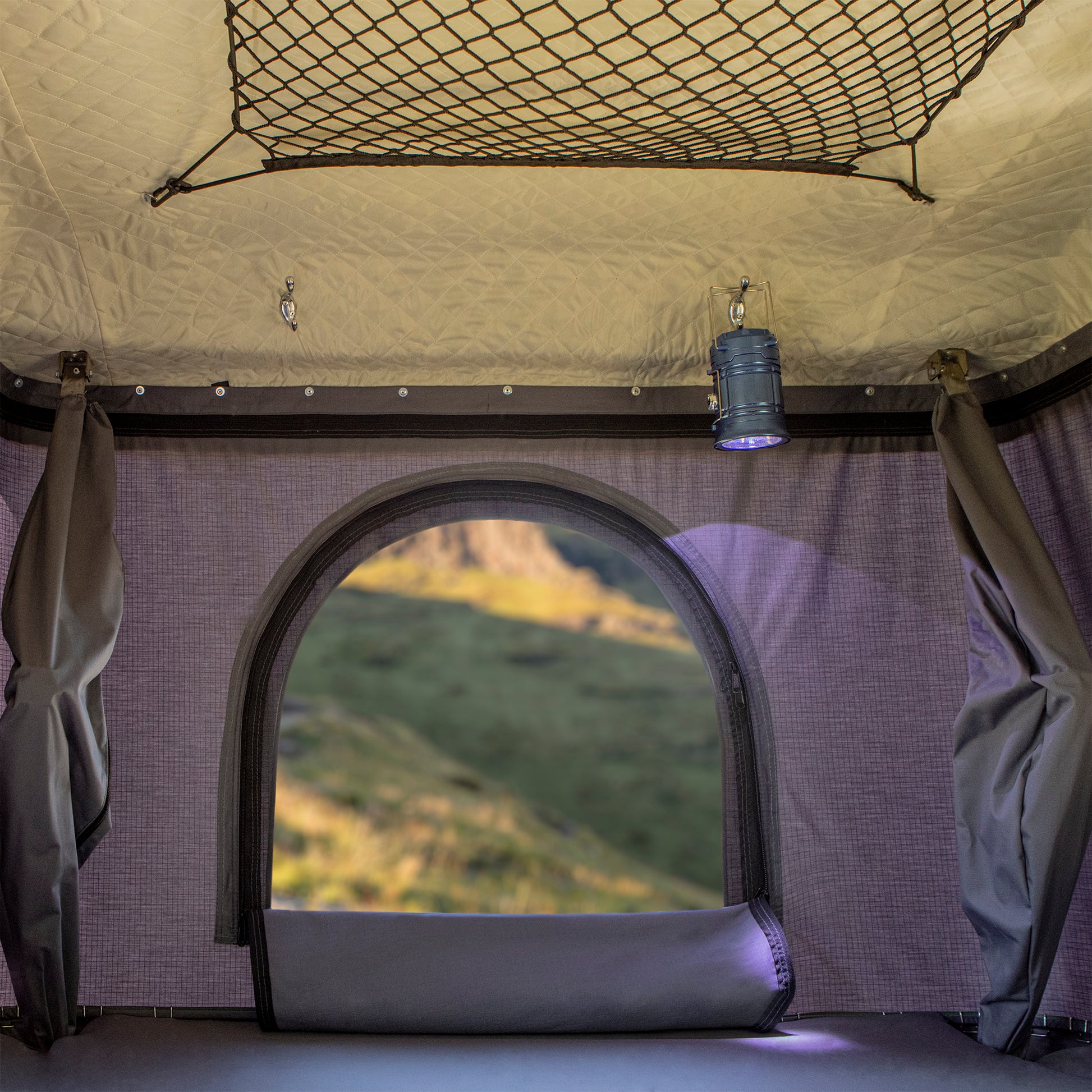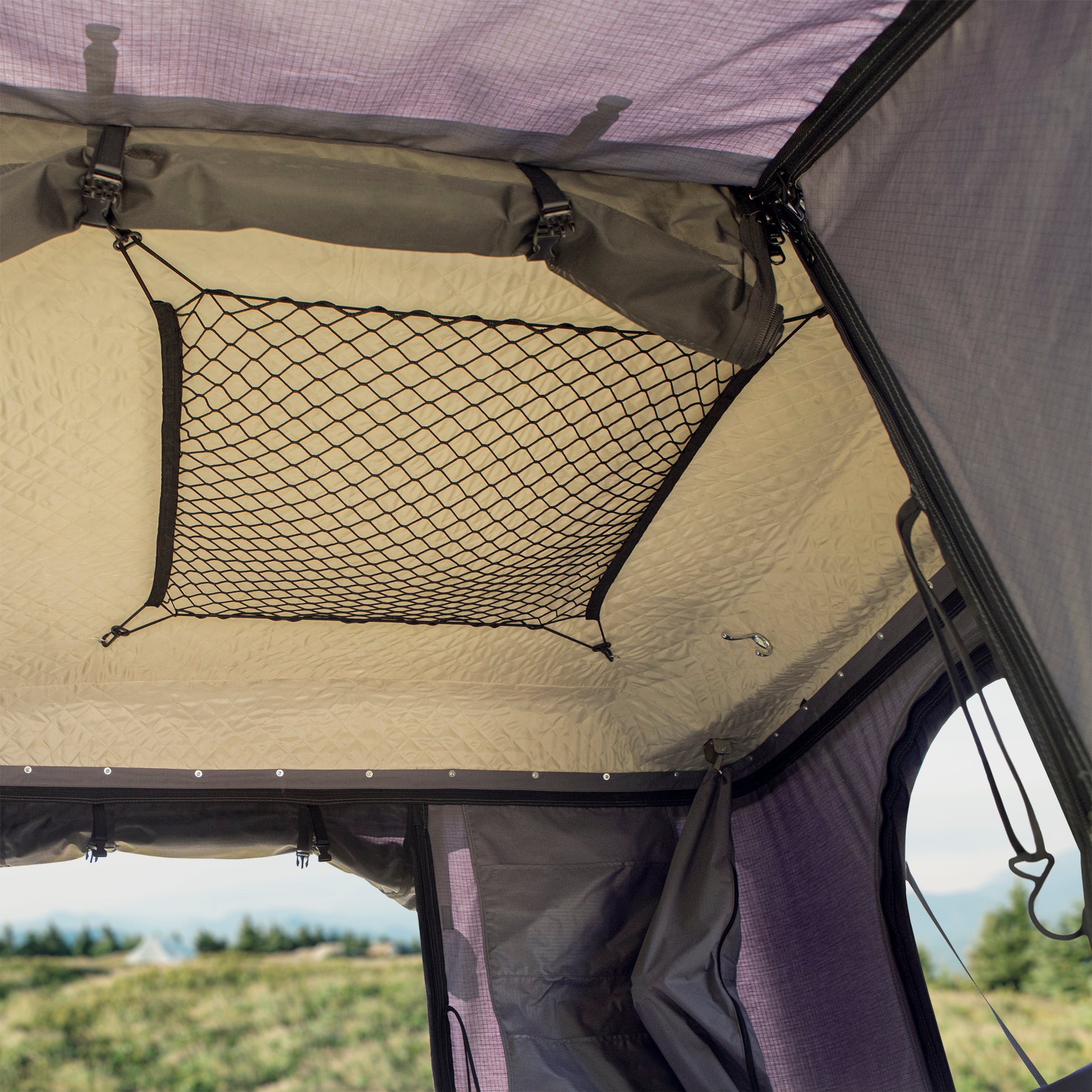 La tente de toit rigide Suite offre une nouvelle façon de voir le camping. Avec un espace intérieur plus grand, la Suite offre un espace de couchage pour deux adultes et un enfant. La tente de toit rigide Suite a deux portes avec deux fenêtres, ce qui crée une excellente ventilation transversale permettant à l'air de circuler librement dans toute la tente. S'ouvre et se ferme en quelques secondes avec le culbuteur.